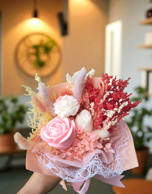 Regador Decorativo com Flores Preservadas e Vela de Soja