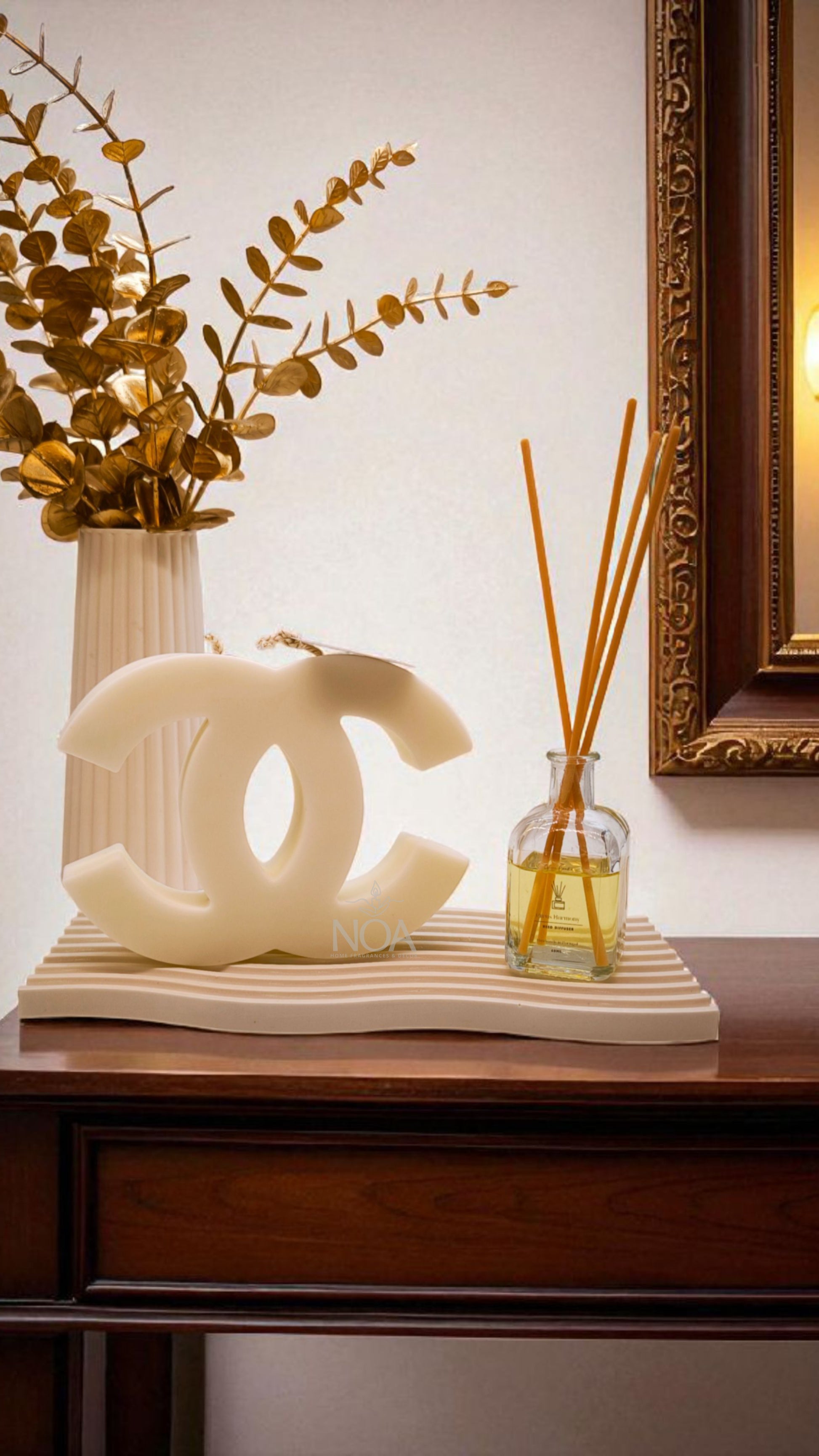 Vela inspiração Chanel – peça decorativa em cera de soja natural, elegante e distinta.