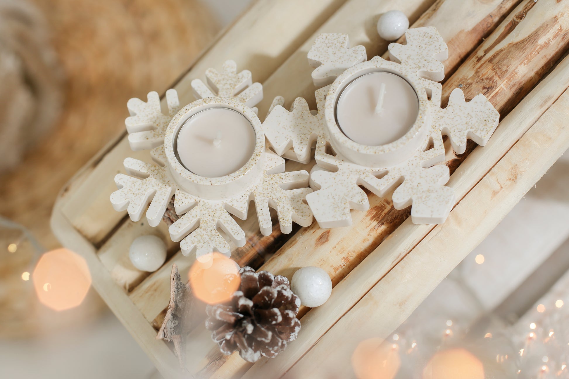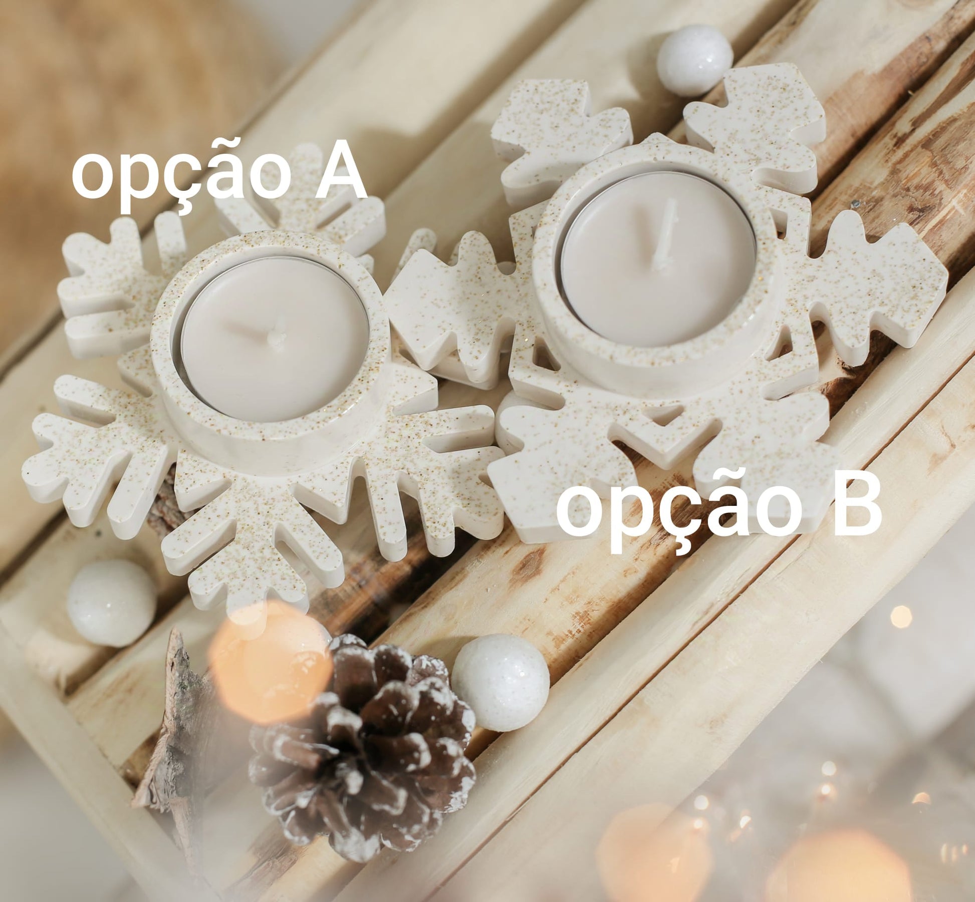 Disponível em duas opções, cada floco de neve é vendido individualmente e inclui uma tealight como oferta. A embalagem é uma caixa elegante com laço dourado e etiqueta "Feliz Natal", perfeita para oferecer um presente especial.