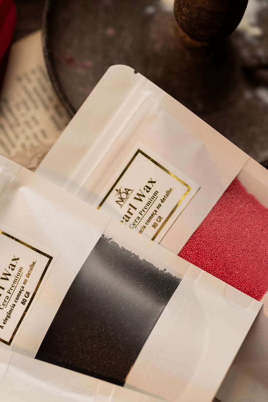 - 1 embalagem de pérolas de cera 270gr (opção escolher a cor)