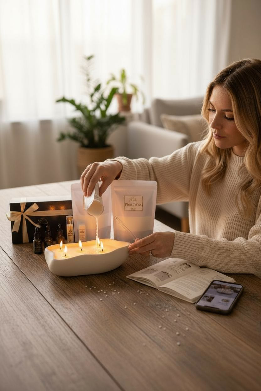 Esta caixa inclui todos os elementos essenciais para criar uma vela personalizada, com estilo e intenção: