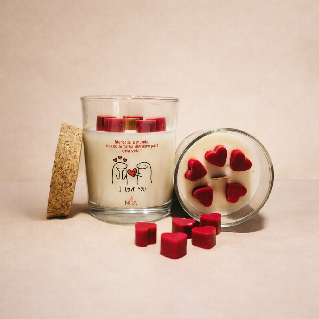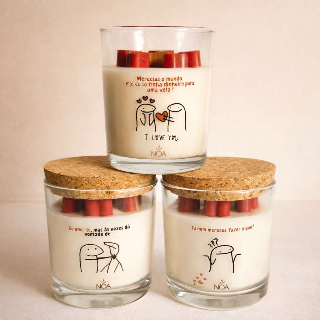Surpreenda a sua cara-metade com esta vela única e cheia de personalidade! Feita à mão com amor, esta vela combina design divertido e mensagens apaixonantes que dizem tudo por si. Perfeita para criar momentos de aconchego e arrancar um sorriso no Dia dos Namorados.